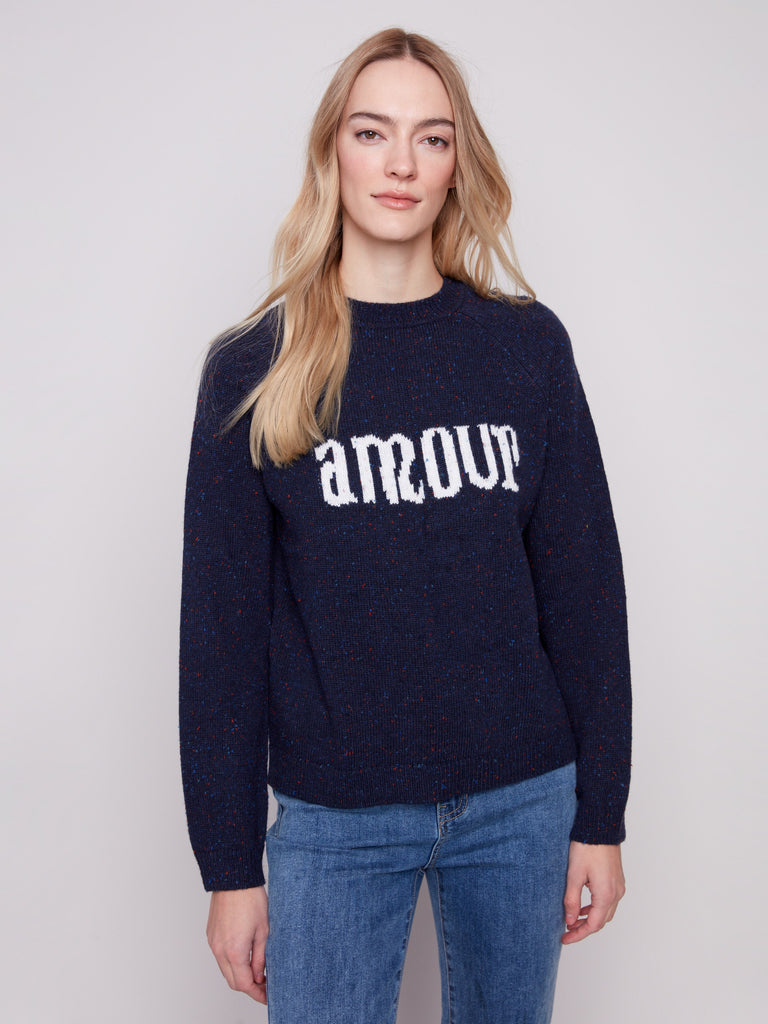 Mock Neck Sweater With Embroidered Hearts - Black $114.00 USD / Mock Neck Sweater With Embroidered Hearts - Black $114.00 USD /