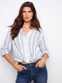 Striped Short Sleeve Blouse - Fog $89.00 USD /