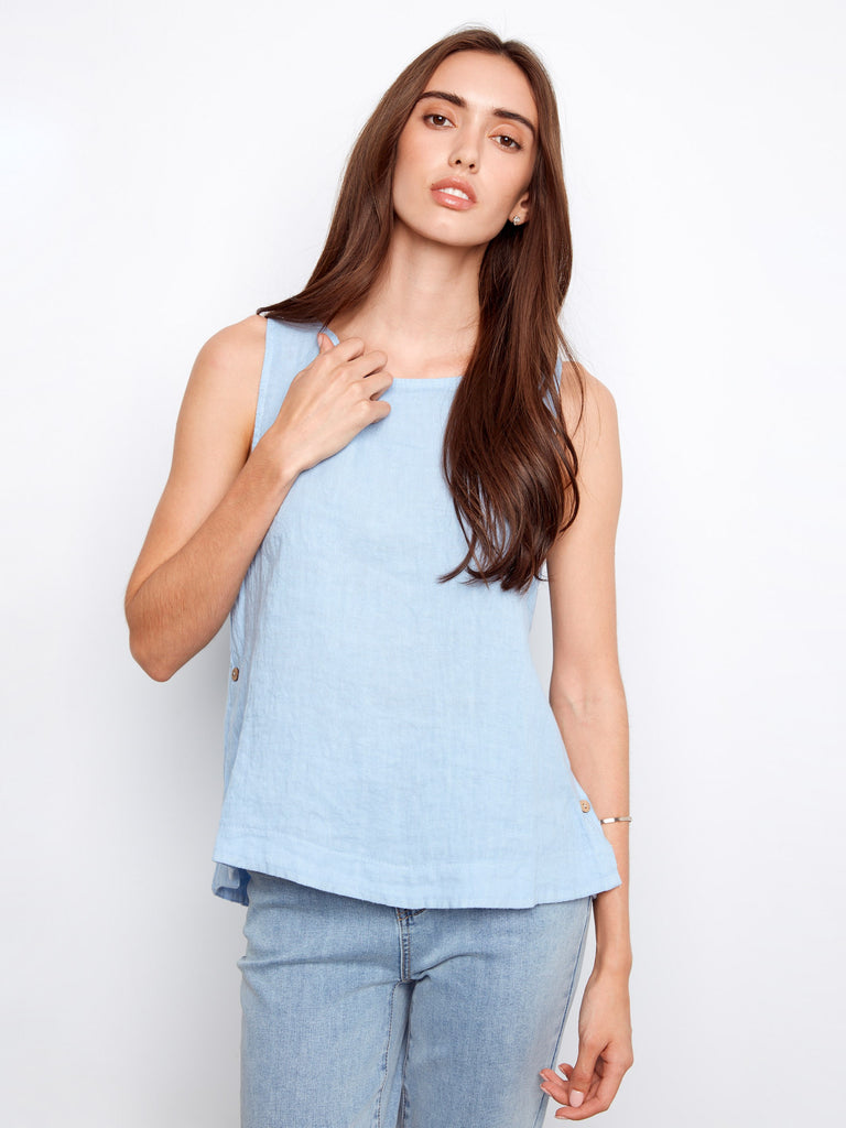 Top SellerPrinted Linen Blend Button-Up Blouse - Jean $99.00 USD /
