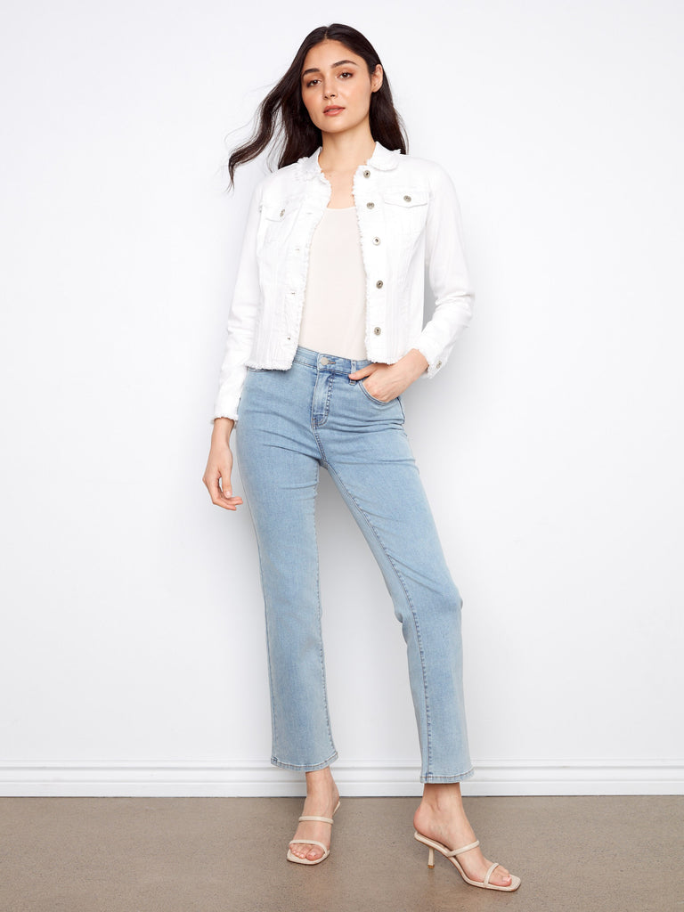 The short jackets and long jackets in the Charlie B Outerwear collection serve different purposes and styling needs, making them both must-haves for a versatile wardrobe. Short jackets typically fall at the waist or hip, offering a lighter, more casual look. They’re ideal for transitional weather, layering over dresses or high-rise pants, and adding a structured silhouette to your outfit. Long jackets, on the other hand, provide more coverage and warmth. These styles often extend to the thigh or knee, making them suitable for colder months and a wise choice for women seeking functional and fashionable outerwear. Both lengths feature thoughtful details like stretch fabrics, textured finishes, and modern cuts to keep you stylish in any season.