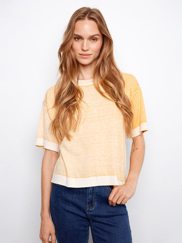 Embrace the serene charm of our sunshine yellow reverse print sweater, thoughtfully designed for an etherial vibe. Its unique reverse print and relaxed fit make it an ideal choice for casual days. With short sleeves and a classic crew neck, this sweater exudes a relaxed yet fashionable aura. Refresh your spring wardrobe with this versatile piece.