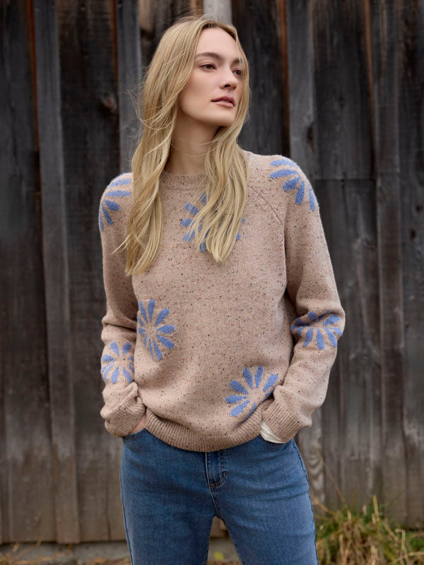 - Top SellerFlower Jacquard Crew Neck Sweater - Heather Vanilla $114.00 USD /