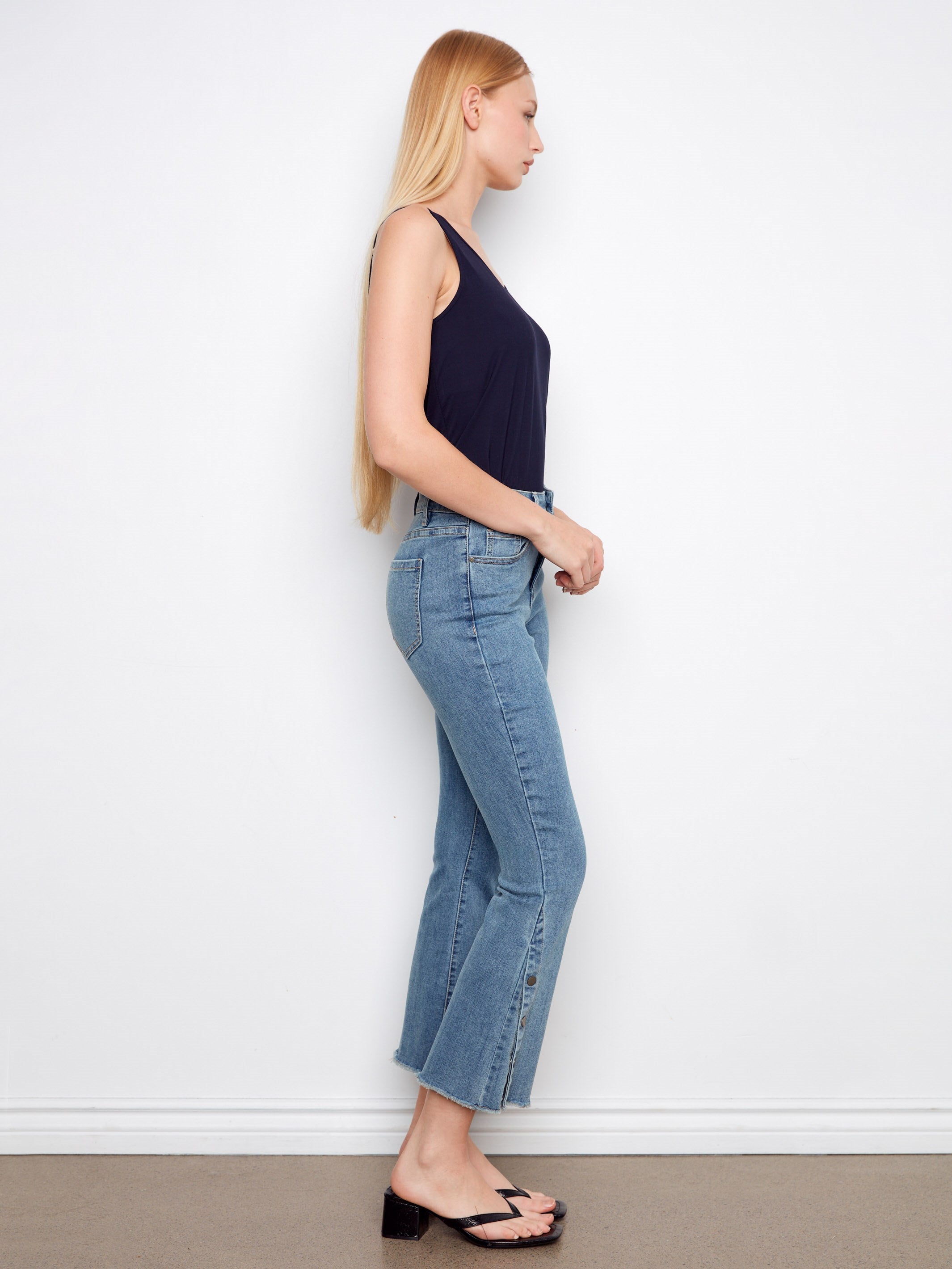 Cropped bootcut jeans are perfect for highlighting those favourite shoes of yours. The side snaps give them a stylish touch, and the stretchy denim keeps you comfy all day. They're a great choice for laid-back days or getting dressed up for an evening out, making them a versatile piece in any wardrobe.