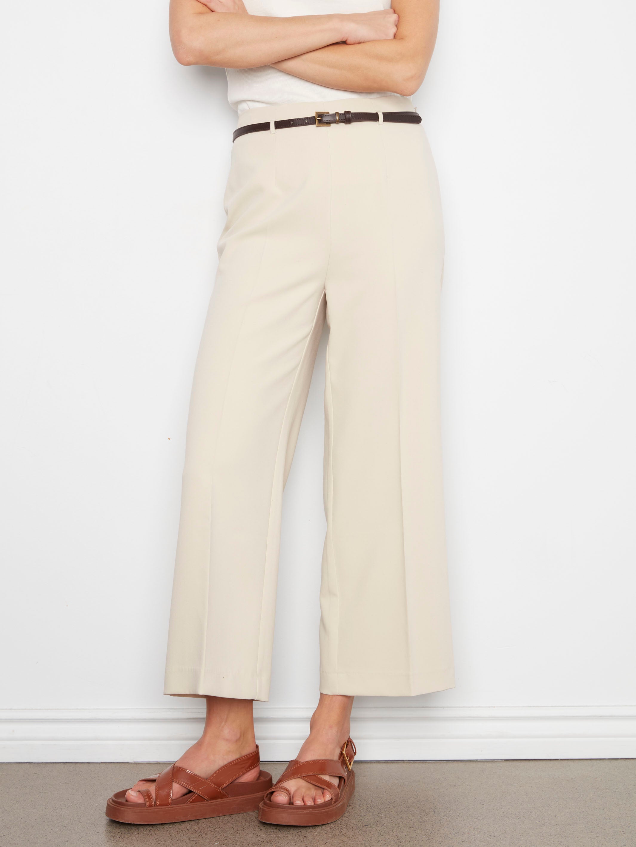 Turn heads with these beige cropped pants! With a belted waist, wide leg, and zip closure, they provide a refined appearance suitable for any event. Whether at the office or out for the day, these pants ensure a chic look.