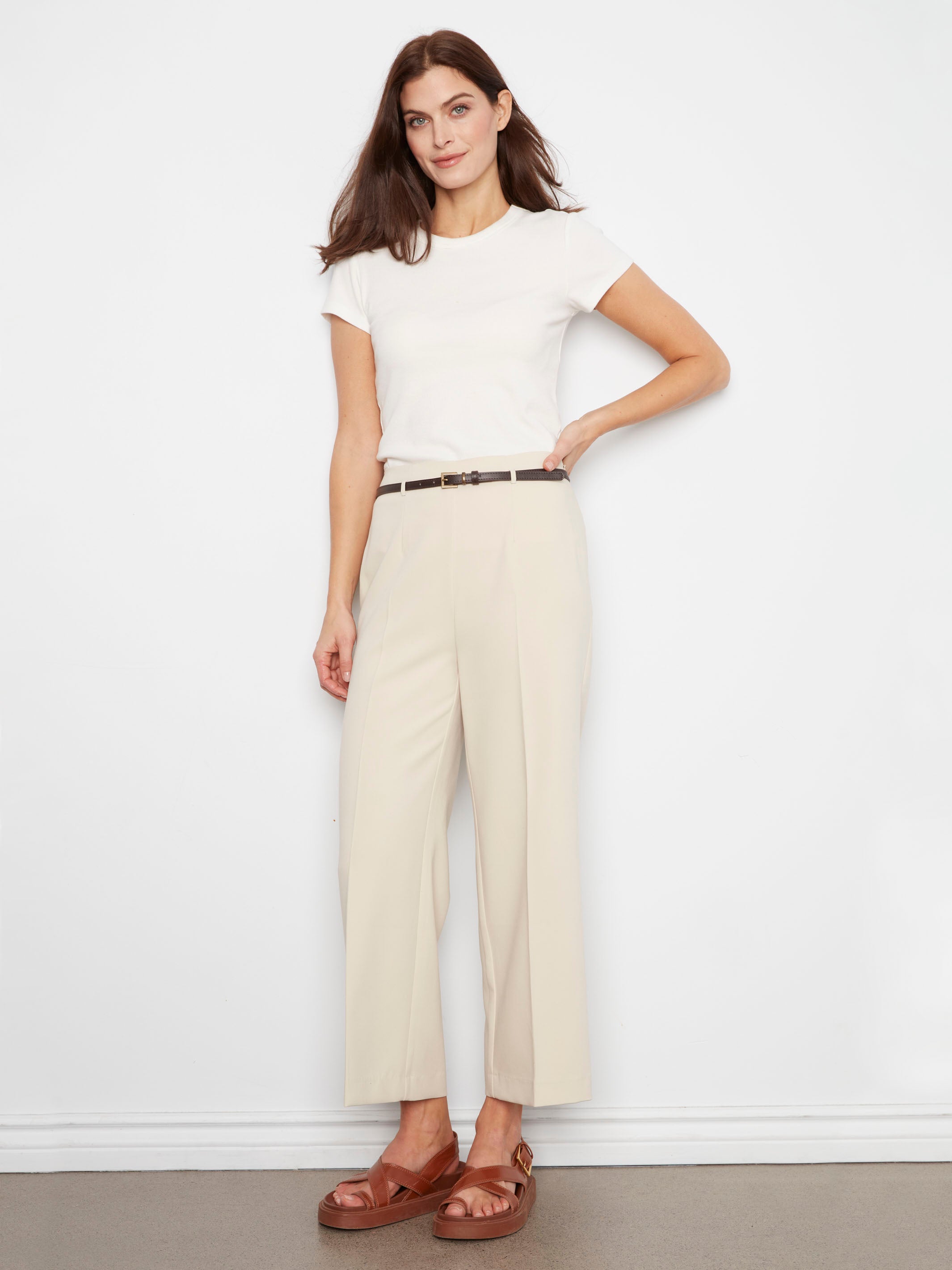 These chic cropped pants feature a belted waist that beautifully defines the silhouette. Exceptionally soft and comfortable, they’re ideal for effortless spring styling.