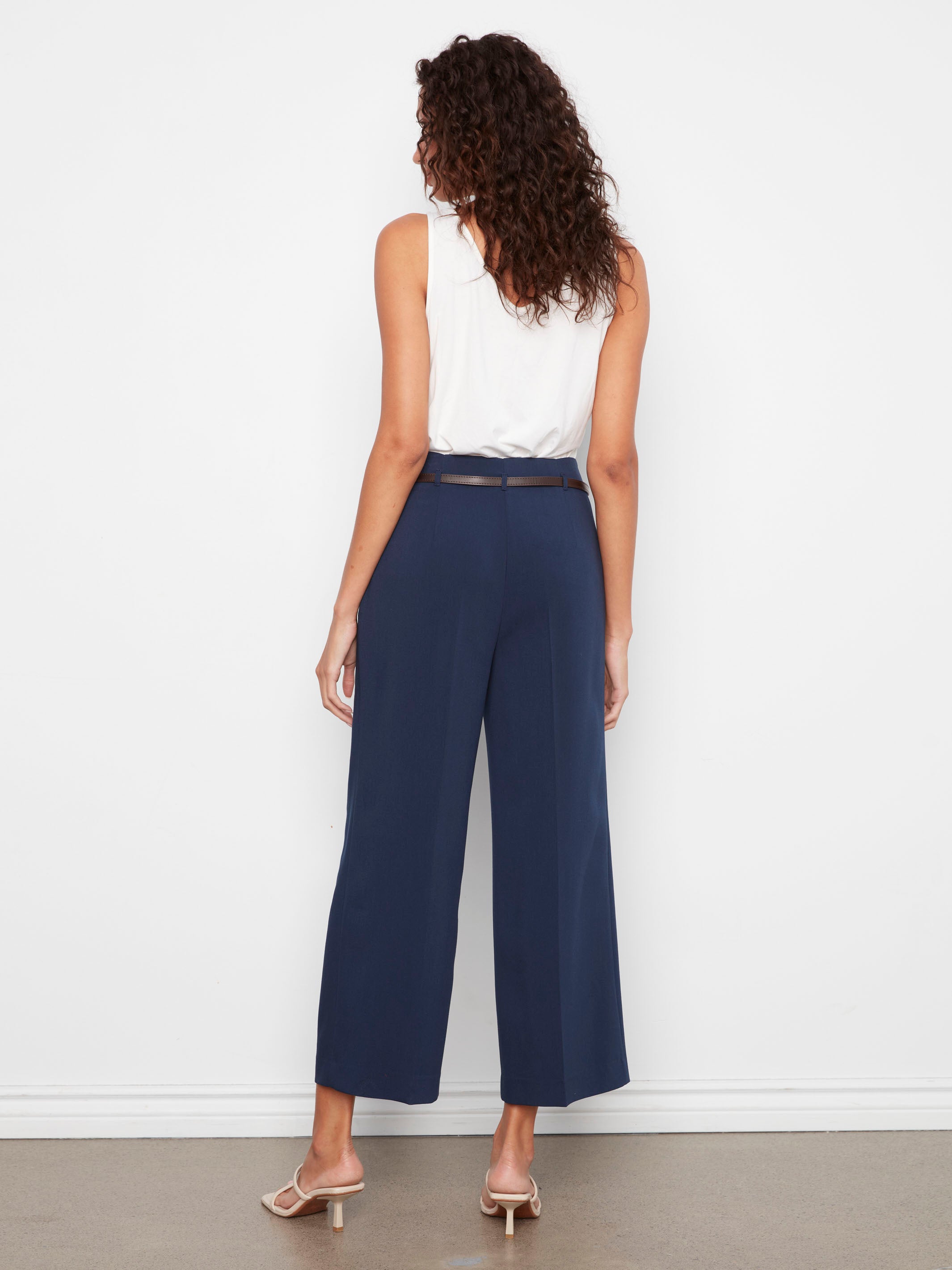 Turn heads with these navy blue cropped pants! With a belted waist, wide leg, and zip closure, they provide a refined appearance suitable for any event. Whether at the office or out for the day, these pants ensure a chic look.