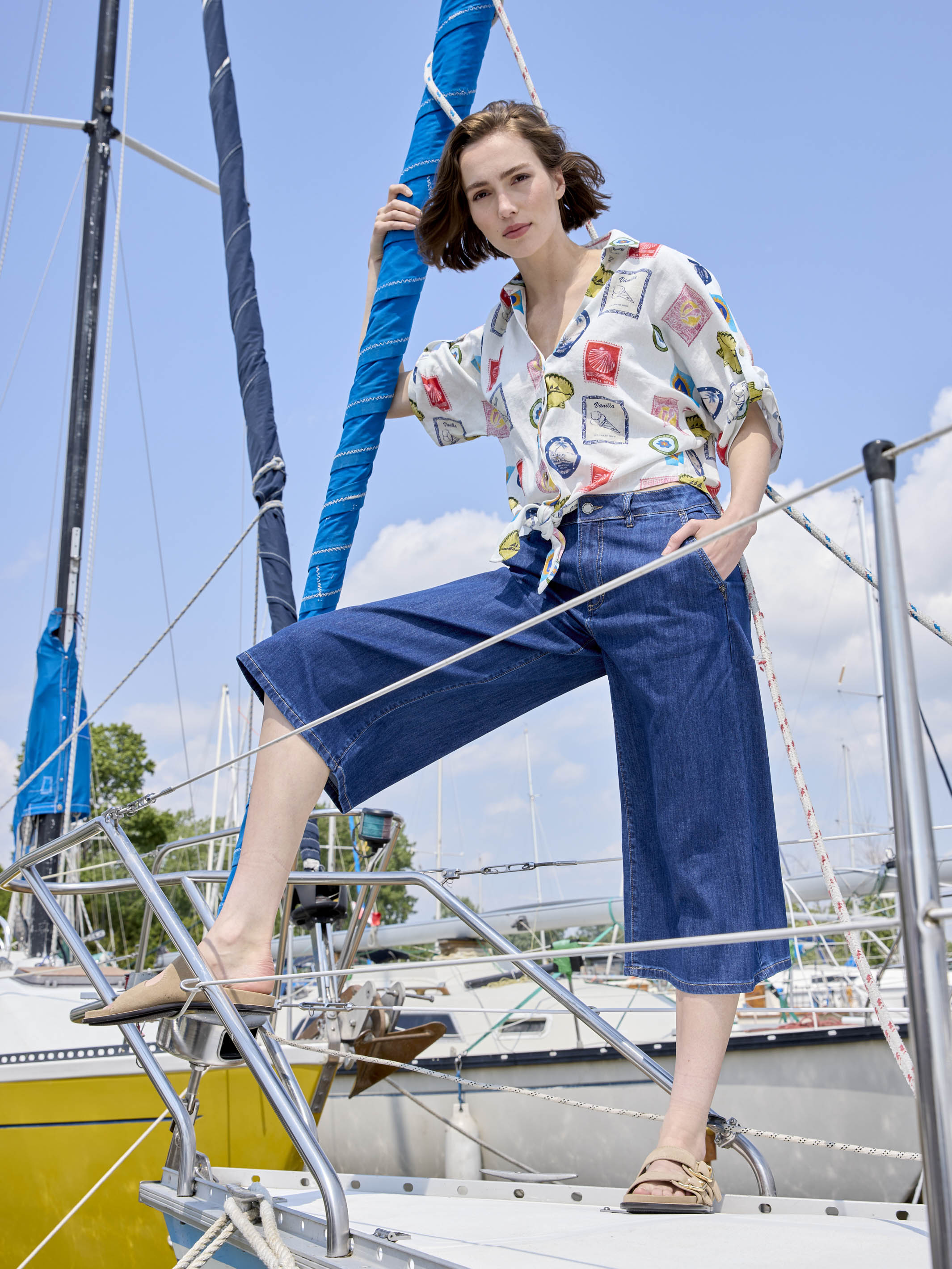 Ultra-comfortable, these wide leg palazzo jeans bring effortless style to everyday wear. Their cropped length and slash pockets add a modern, relaxed touch, while the rich indigo shade enhances their timeless appeal and makes them perfect for casual outings. A versatile piece that slips seamlessly into your wardrobe.