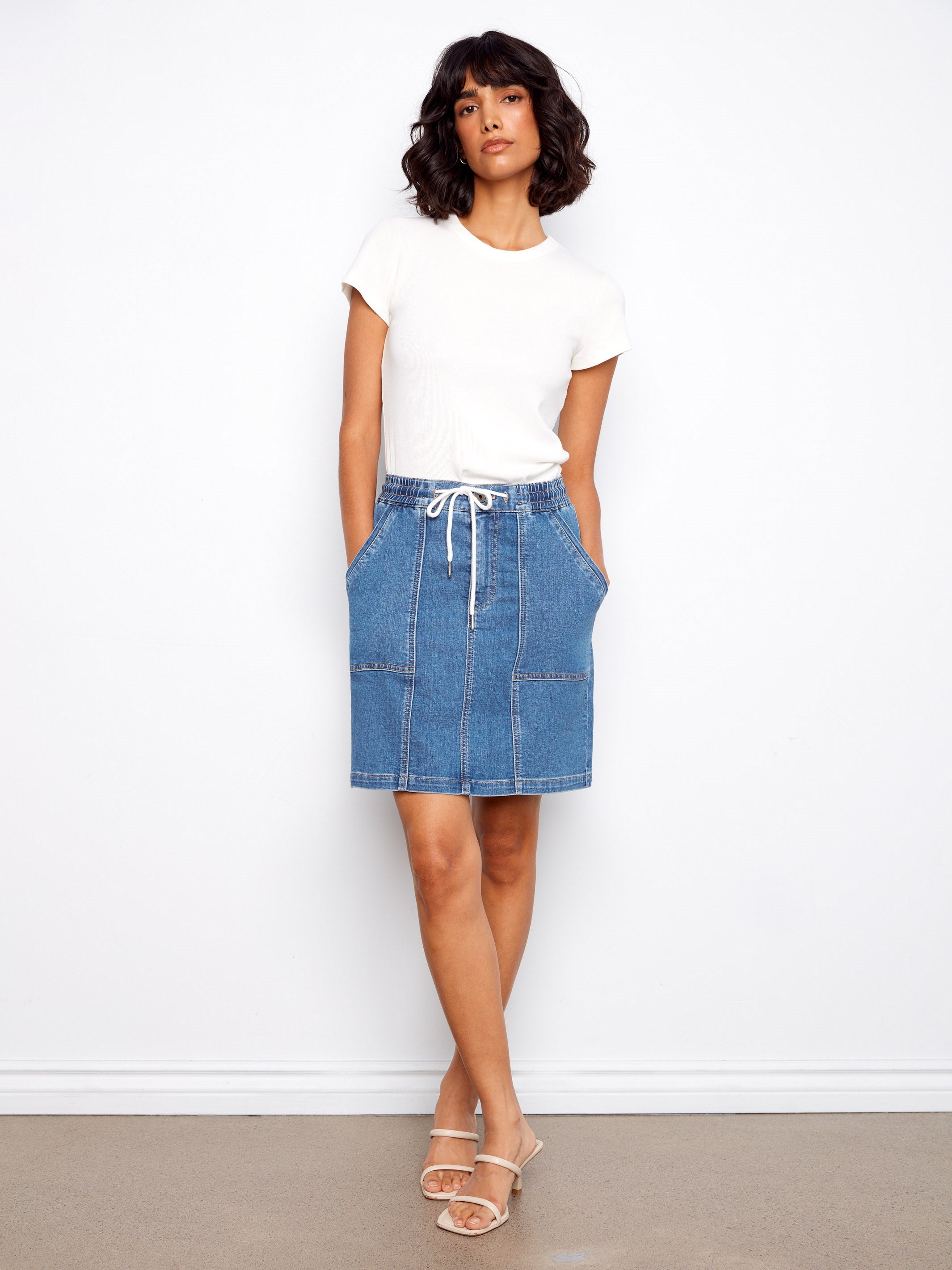 Discover the ultimate spring and summer essential with our versatile drawstring skort, crafted from stretch denim for the perfect balance of style and comfort. Designed for an active lifestyle, it offers a flattering fit with an adjustable waistband and practical patch pockets. From beach days to casual outings, this skort delivers a chic, effortless look.