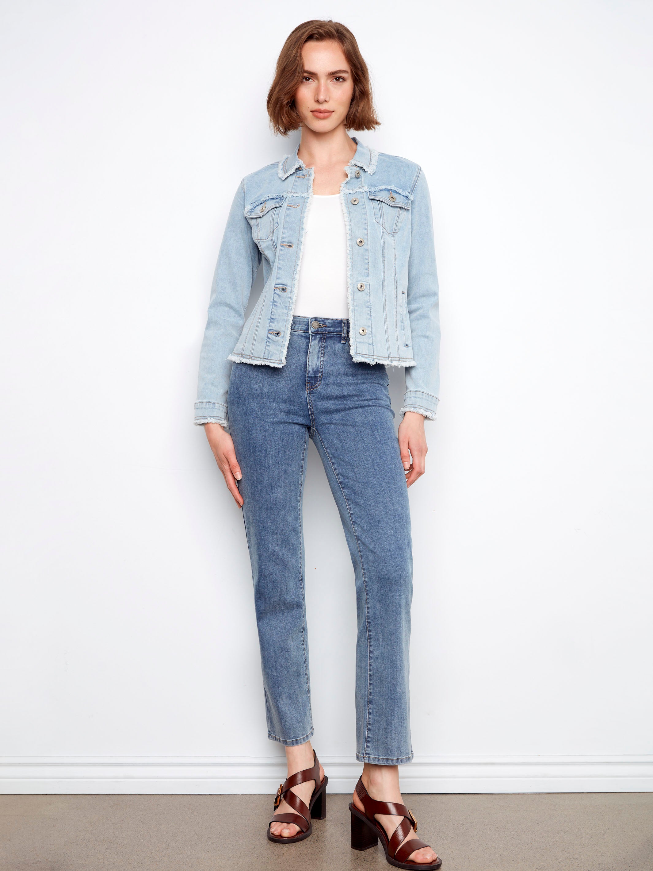 Designed for versatility, this women's jean jacket moves effortlessly from day to night. Comfortable yet stylish, its frayed finish adds a modern twist to a timeless wardrobe essential.