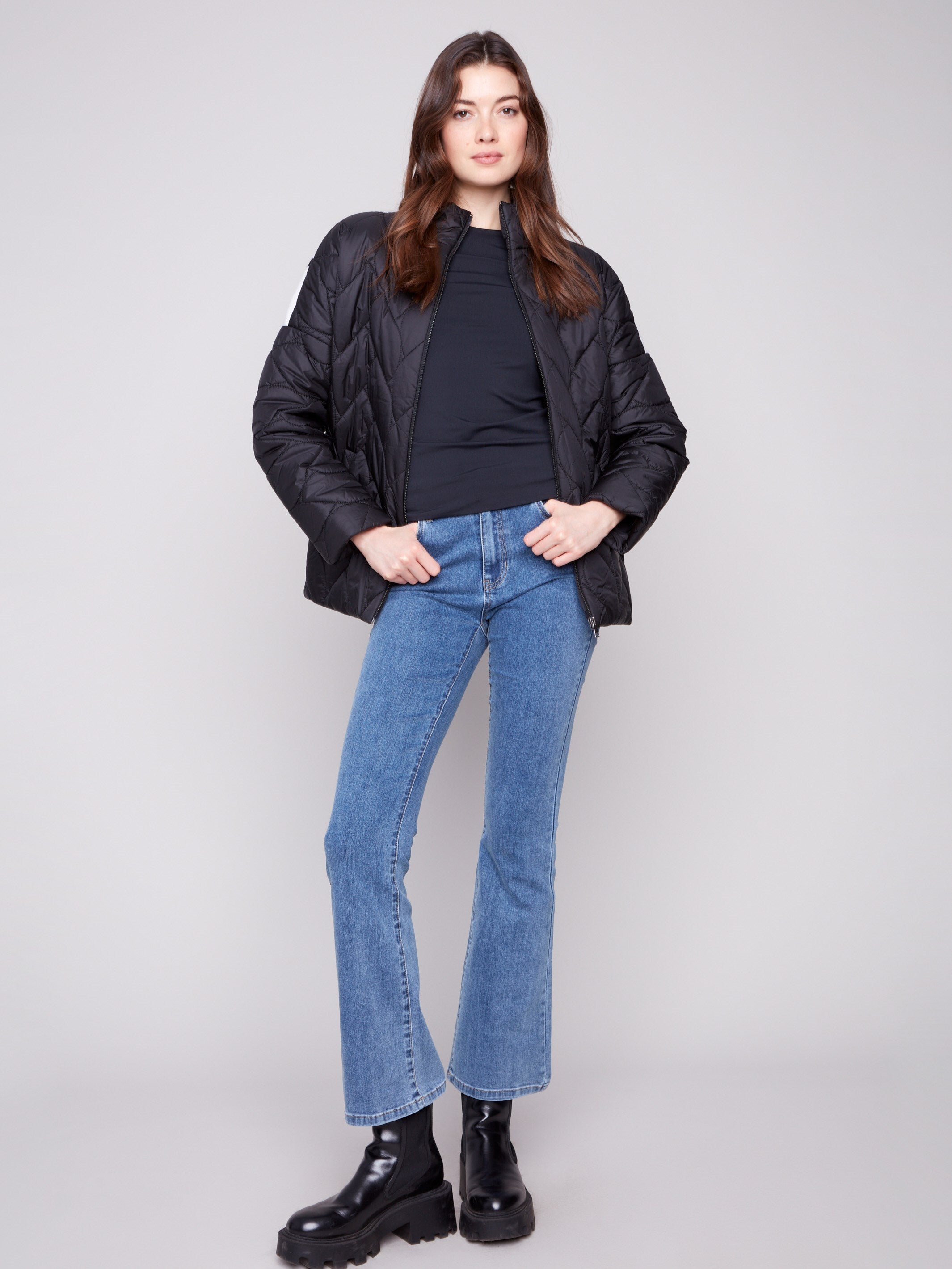 Jacquard Quilted Puffer Jacket - Black/Cream