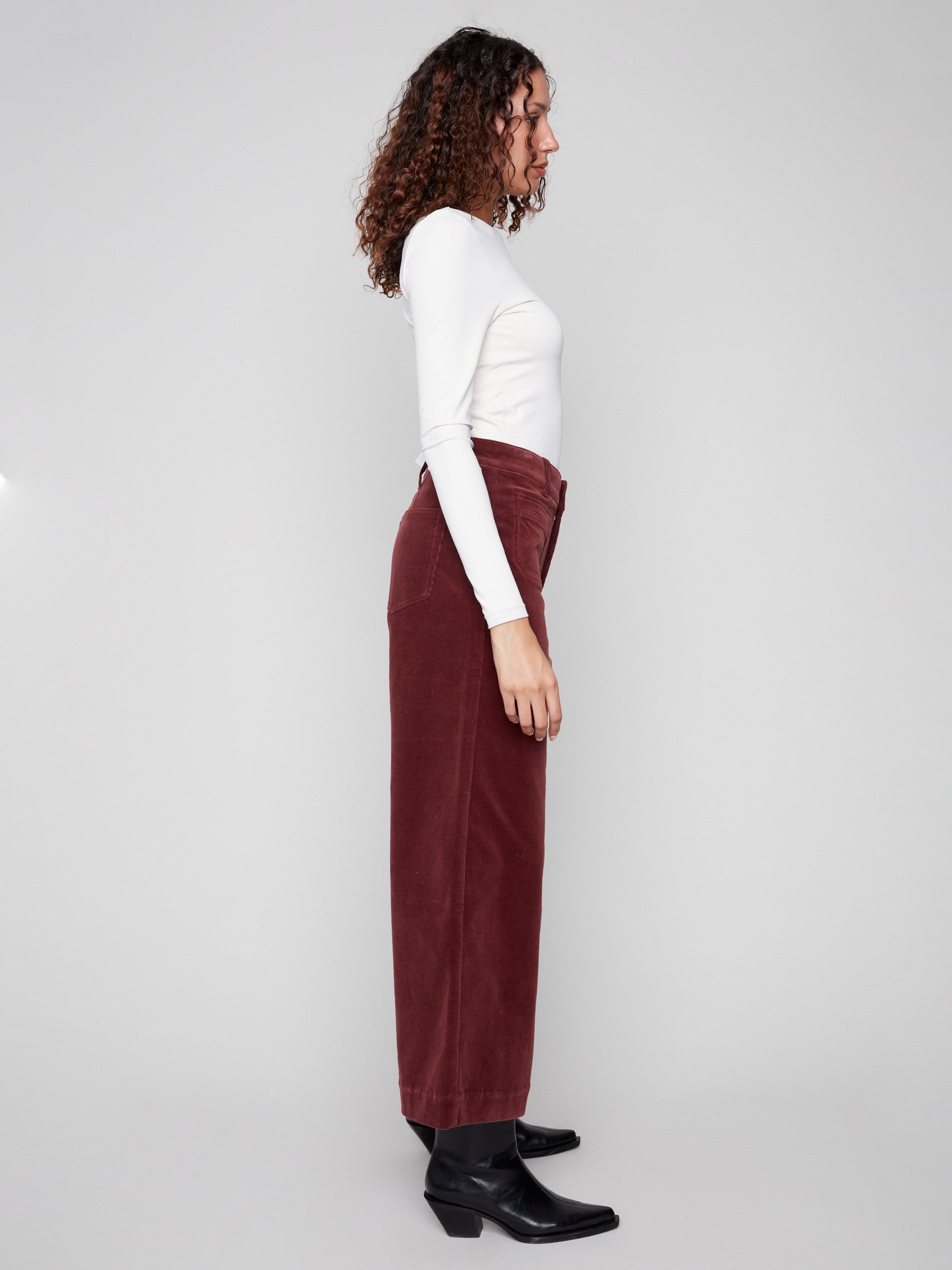 Patch Pocket Flare Corduroy Pants - Cabernet