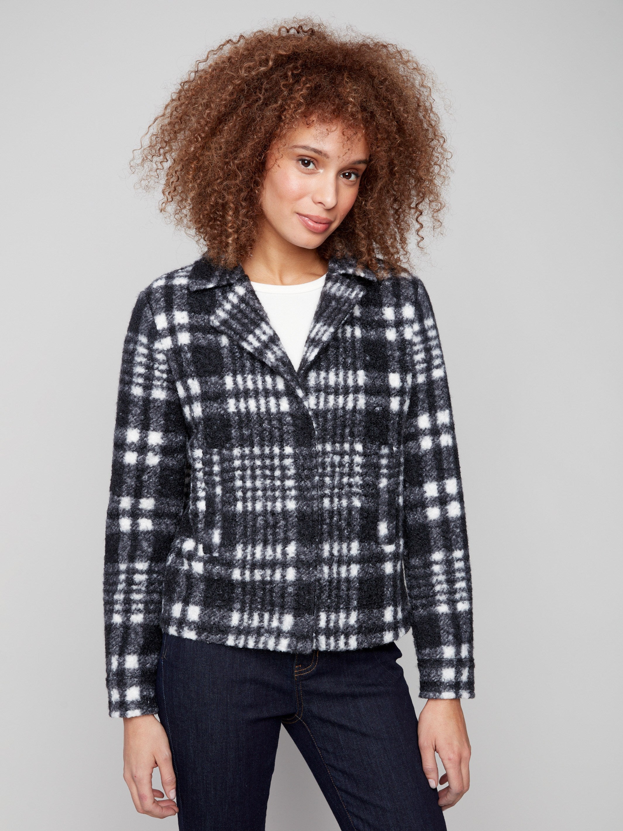Plaid Bouclé Knit Short Coat - Pepper