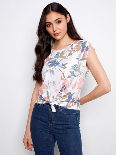 Printed Cotton Front Knot Top - Artist