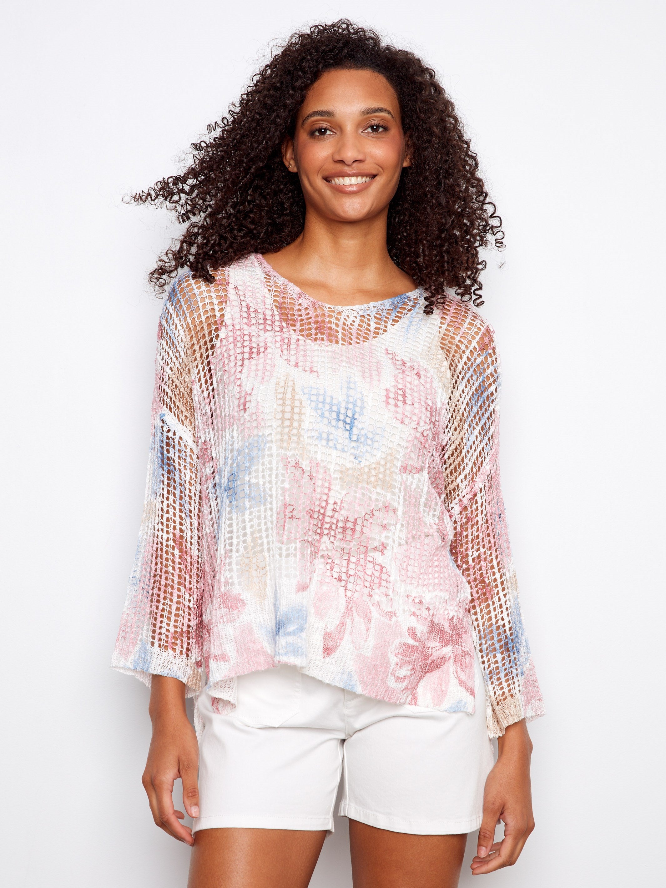 Refresh your spring wardrobe with our artistic fishnet crochet sweater. Featuring an abstract flowery design and made from lightweight material, it has a relaxed fit that’s perfect for breezy days. With its unique style, this sweater is sure to turn heads. Make sure to grab this essential piece for your wardrobe!