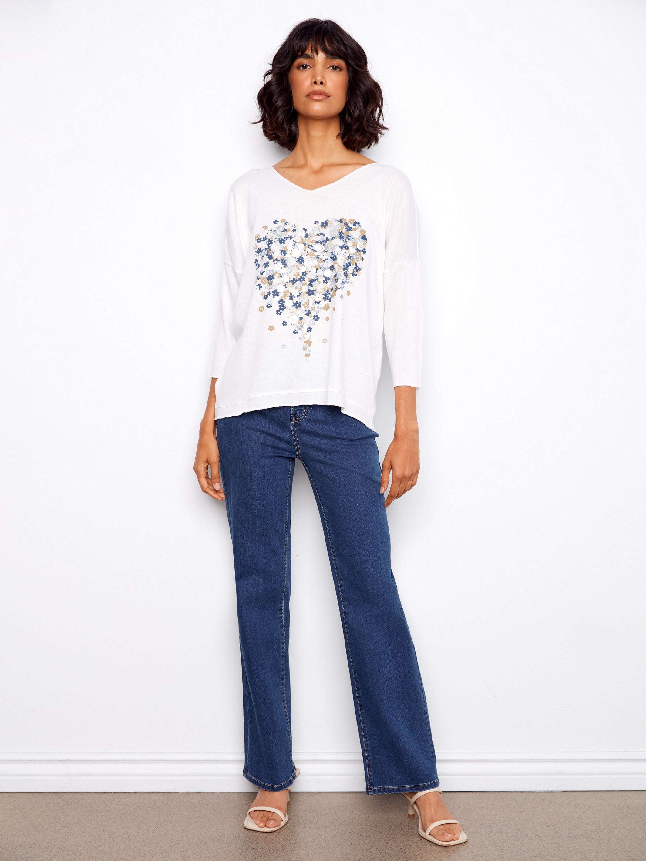 Step into a romantic vibe with this delightful V-neck top. Its heart-inspired floral print is ideal for expressing your fun-loving nature. Made from a soft fabric blend, it offers a comfortable fit, making it perfect for wearing from day to night. Perfect for expressing your joyful nature, this white top is a must-have addition to your spring wardrobe.