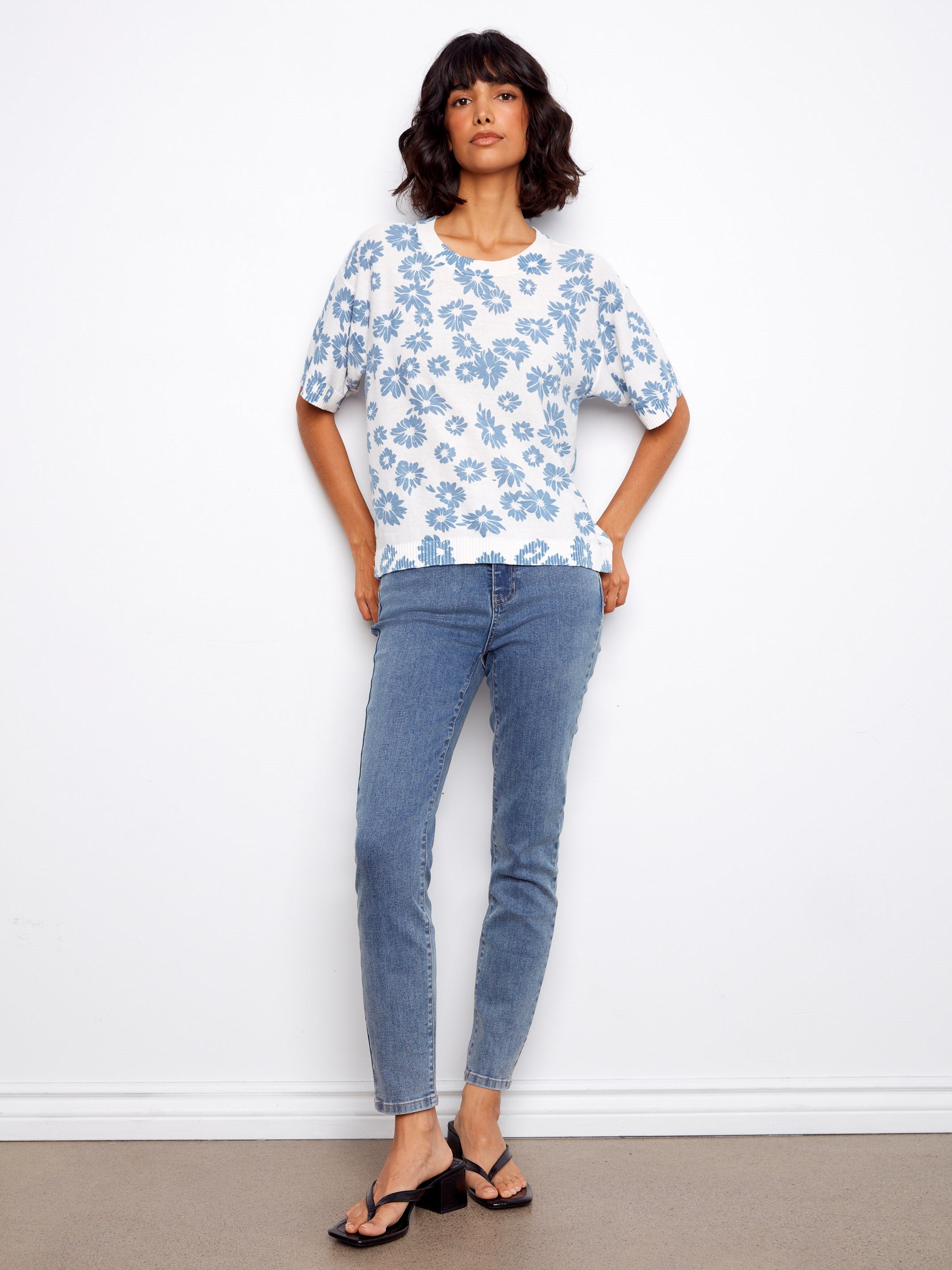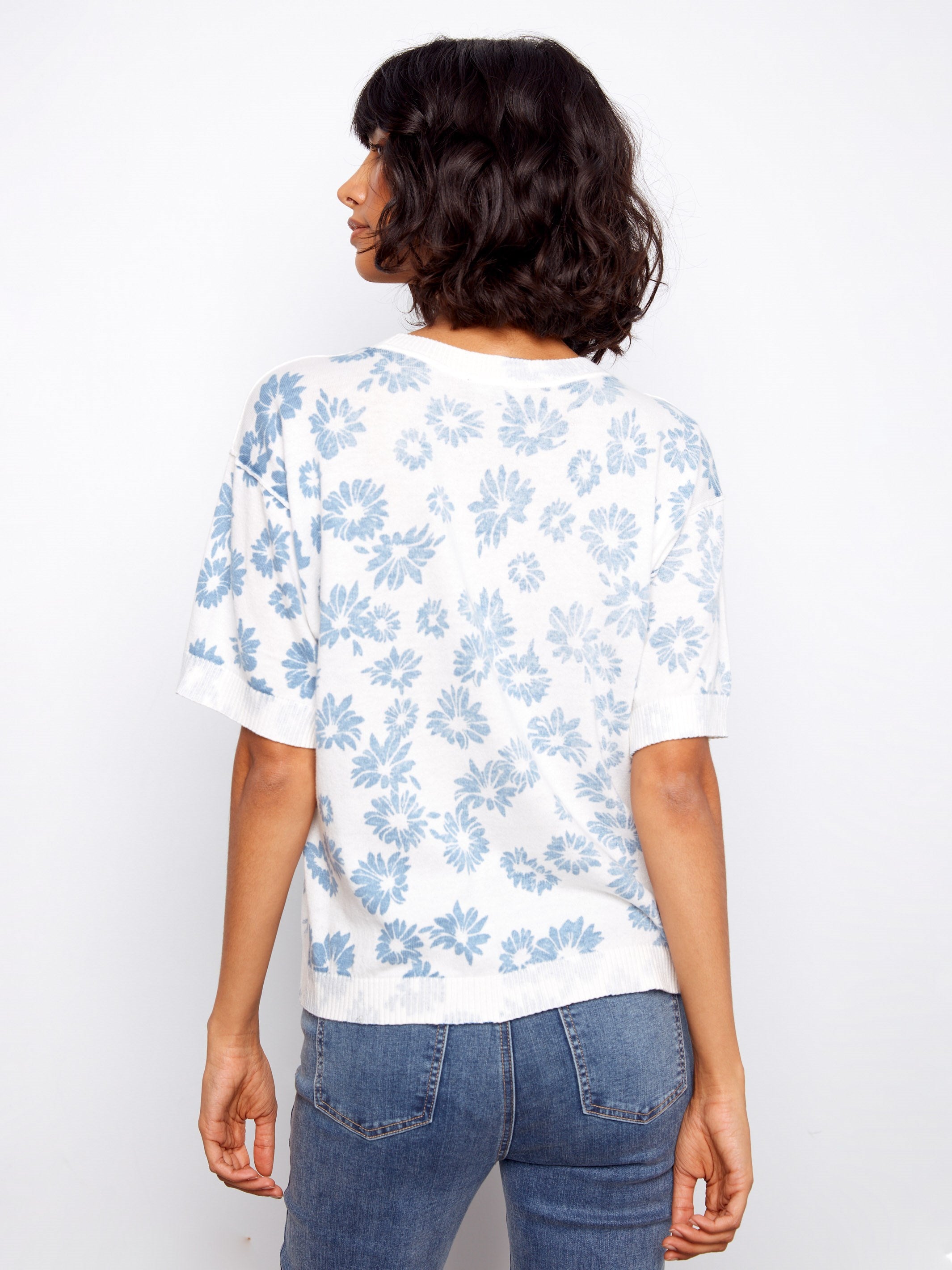 This reversible short sleeve sweater, featuring a charming floral print, offers versatile style options. With short sleeves and a classic crew neck, it exudes a relaxed, casual vibe perfect for any occasion. Made from soft cotton, it delivers comfort without compromising on style. Simply flip it inside out for an instant fresh look.