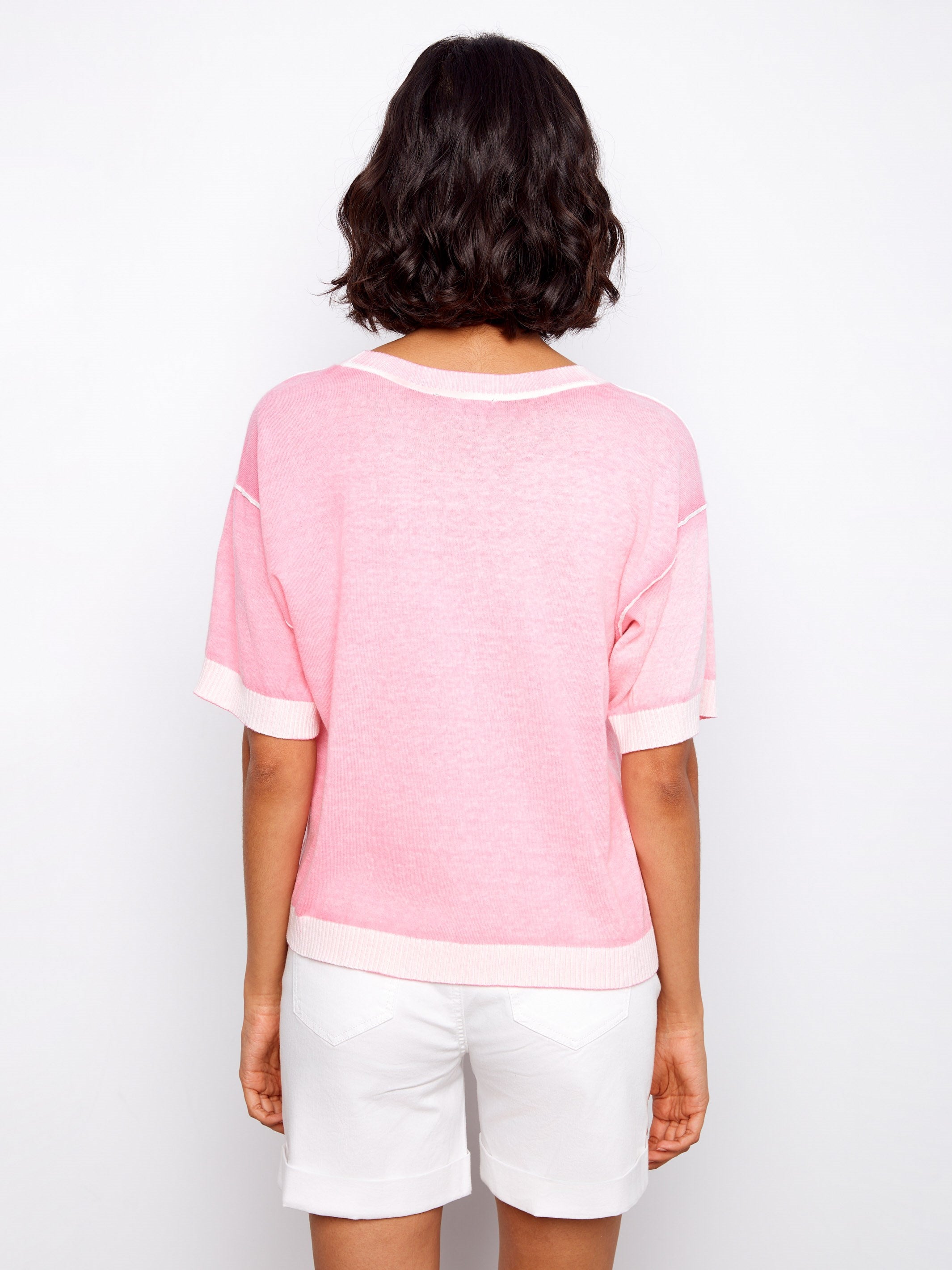 Embrace the serene charm of our candy pink reverse print sweater, thoughtfully designed for an etherial vibe. Its unique reverse print and relaxed fit make it an ideal choice for casual days. With short sleeves and a classic crew neck, this sweater exudes a relaxed yet fashionable aura. Refresh your spring wardrobe with this versatile piece.