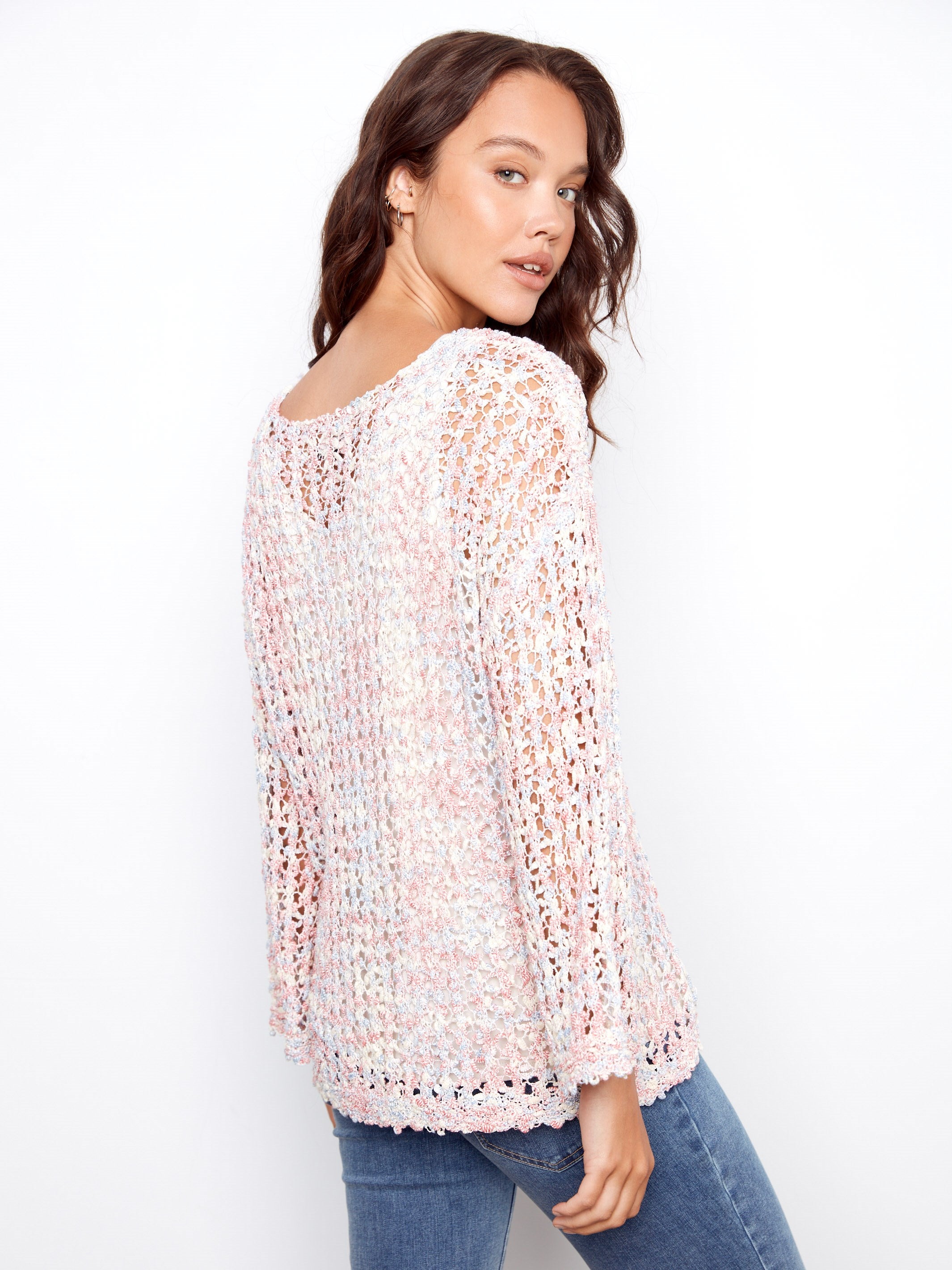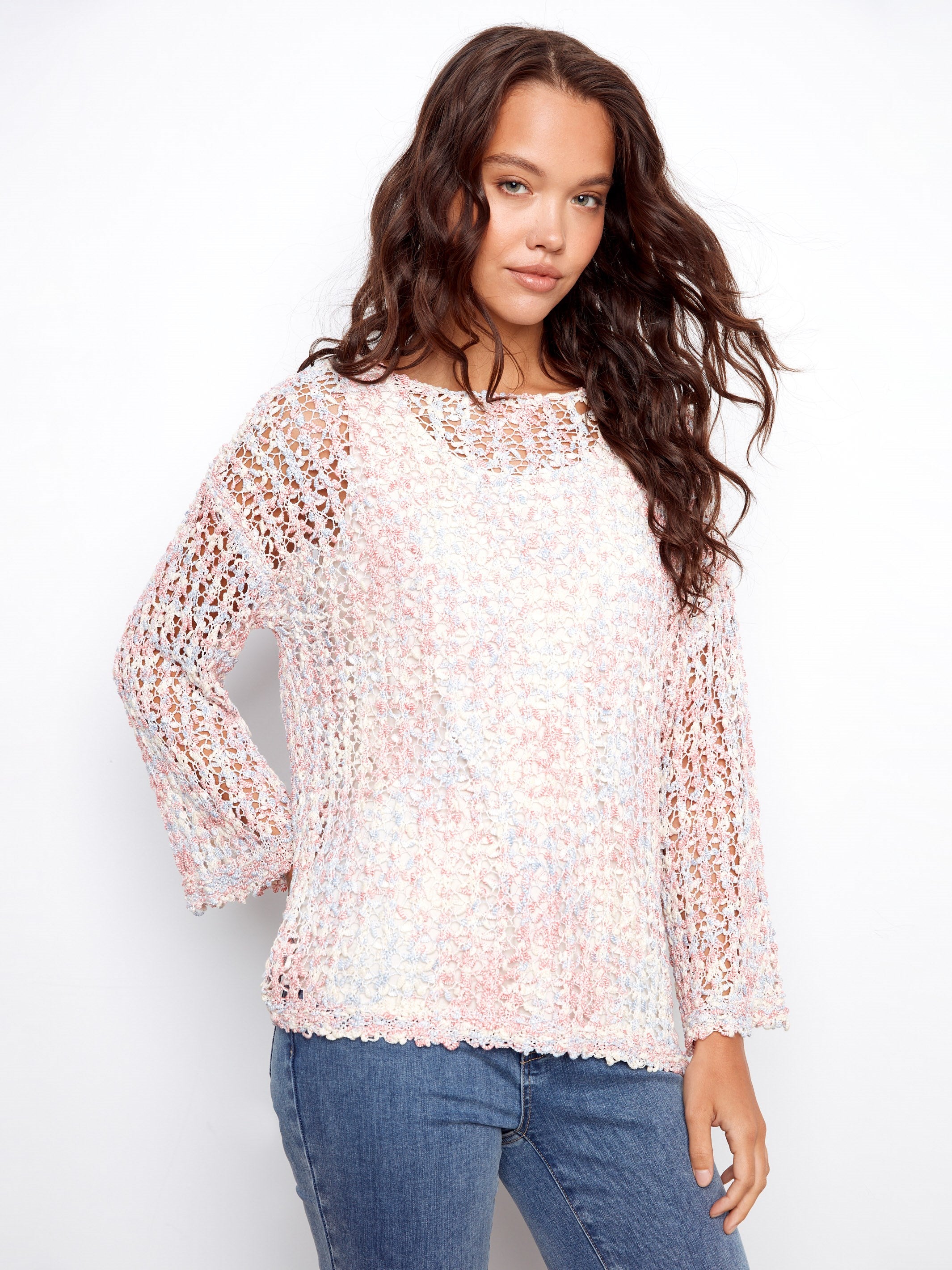 Transform your style with our enchanting space-dye fishnet sweater in a lovely peony pink hue. The space-dye effect offers unique charm, while the 3/4 sleeves ensure a breezy comfort. Ideal for layering, this sweater is a must-have for any spring wardrobe, effortlessly blending elegance and warmth. You won’t want to miss out on this versatile and stylish piece!