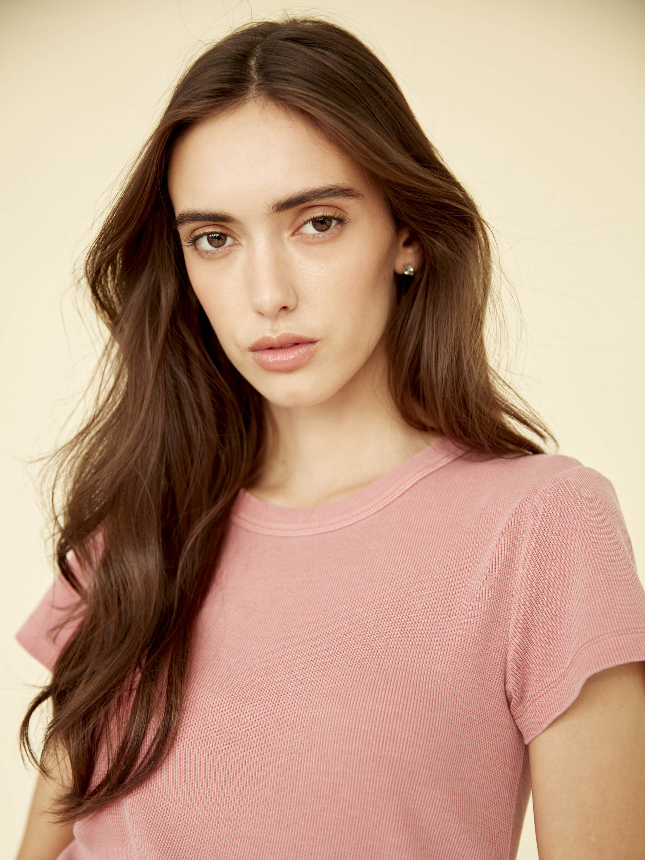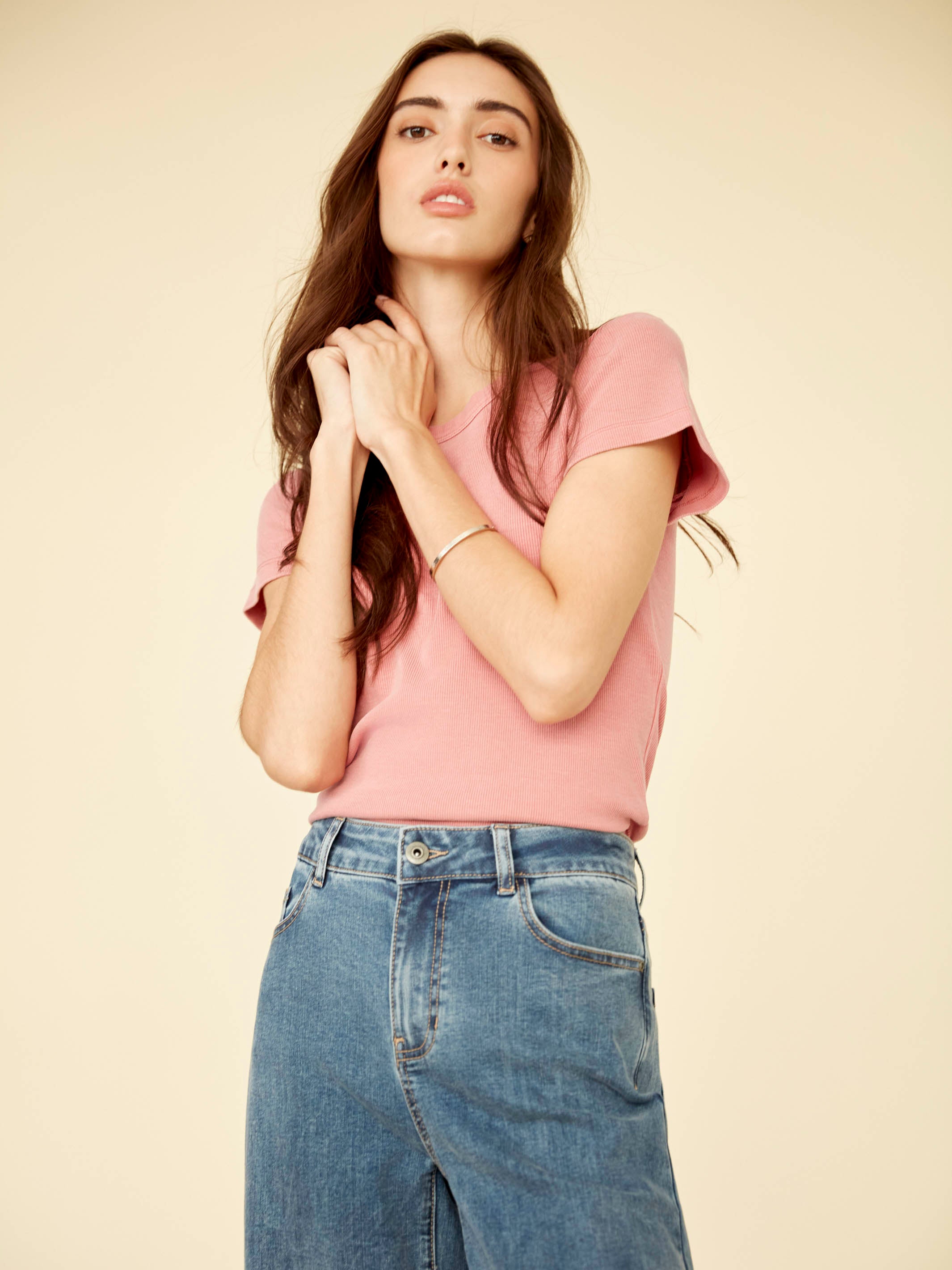 The ribbed crew neck t-shirt is a spring wardrobe essential. Crafted from a soft, stretchy fabric blend, it offers a clean, classic silhouette that pairs effortlessly with any outfit. Perfect for casual outings or relaxed evenings, this carnation pink t-shirt delivers comfort and style in equal measure.