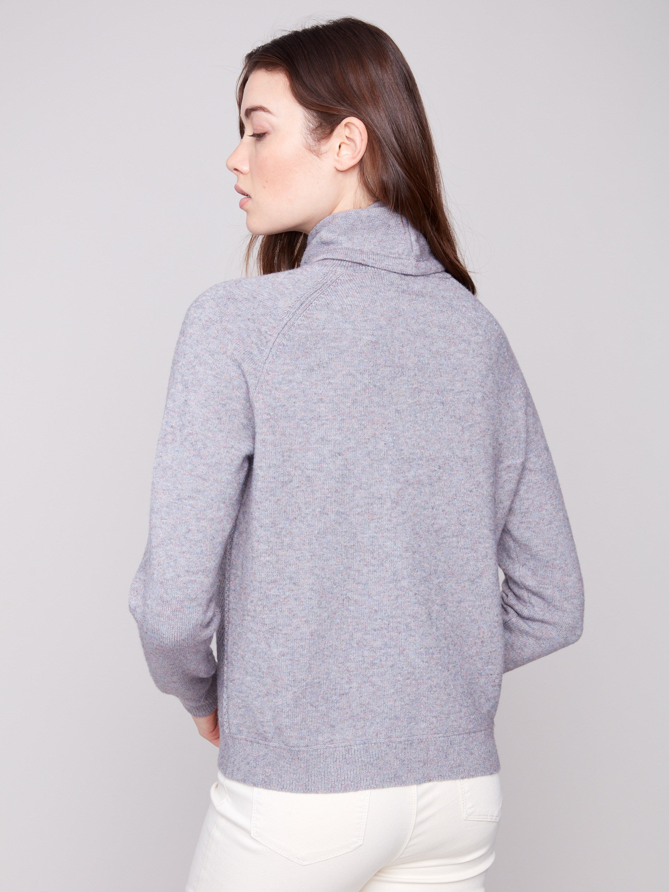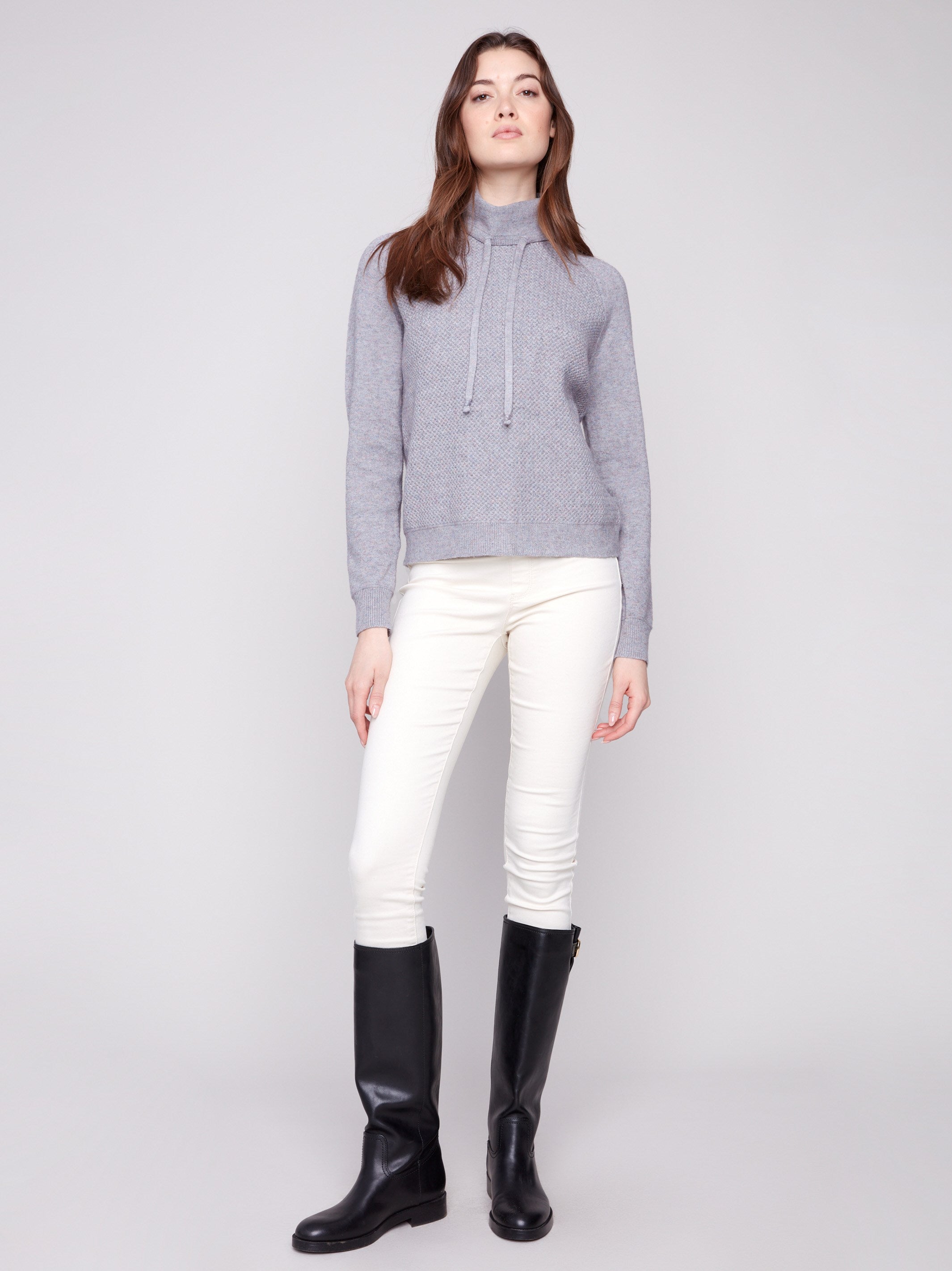 Textured Cowl Neck Knit Sweater - Heather Grey